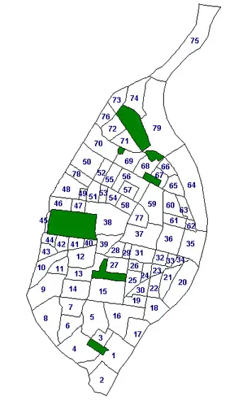 The City of St. Louis officially recognizes 79 neighborhoods within its limits.[1] Census data are collected for each neighborhood, as well as crime data, historic property data, and dining establishment health ratings. National historic neighborhoods are identified by the official neighborhood to which they belong.
