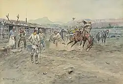 ![]() | Cowpunching Sometimes Spells Trouble, 1889, Oil on canvas, Sid Richardson Museum, Fort Worth, Texas (https://www.sidrichardsonmuseum.org Archived 2021-05-12 at the Wayback Machine) |