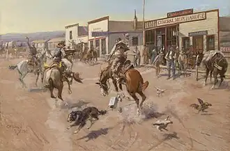 ![]() | When Cowboys Get in Trouble (The Mad Cow), 1899, Oil on canvas, Sid Richardson Museum, Fort Worth, Texas (https://www.sidrichardsonmuseum.org Archived 2021-05-12 at the Wayback Machine) |