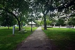 | Caesar's | 1939 N Warren Ave | 3.7-acre (15,000 m2) | Southern end of the "east bank trail" on the East Side, adjacent to the east bank of the Milwaukee River and the former North Avenue dam. Site was originally acquired by the City of Milwaukee Water Department in 1889 and was named Milwaukee River Dam Park. In 1929, it was transferred to the city's parks department and named Caesar's Park in honor of Caesar Paikowski.[6] In 1997, the city of Milwaukee removed the central section of the North Avenue dam, allowing the water to flow faster.[7] | |