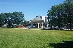 | Cathedral Square | 520 E Wells St | 2.1-acre (8,500 m2) | The exact site of Milwaukee's second courthouse (1873–1931), as well as neighboring land to the first courthouse, which was just north of the park.[10] Next to St. John's Cathedral and location of "Jazz in the Park," an outdoor summer concert series. | |