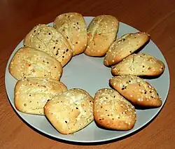 | Djevrek | | Ottoman Empire | A ring-shaped bread-pastry covered with sesame seeds. Typically consumed as a breakfast or snack dish.[29] Similar to simit. |