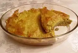 | Banitsa | | Bulgaria | Prepared by layering a mixture of whisked eggs and pieces of cheese between filo pastry, which is then baked in an oven |