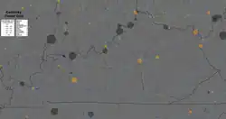 This is a list of electricity-generating power stations in the U.S. state of Kentucky, sorted by type and name. In 2023, Kentucky had a total summer capacity of 18,336 MW through all of its power plants, and a net generation of 63,217 GWh.[2] In 2024, the electrical energy generation mix was 66.9% coal, 26.1% natural gas, 5.9% hydroelectric, 0.6% biomass, 0.4% solar, and 0.1% petroleum.[1]