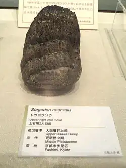 | Elephantoidea | †Stegodontidae | †Stegolophodon | †S. pseudolatidens[13] | Eostegodon pseudolatidens Yabe, 1950[14] | ![]() | Miocene | |
