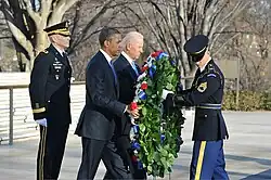 | Virginia | Arlington | January 20 | President Obama participated in a wreath-laying ceremony at the Tomb of the Unknown Soldier in Arlington National Cemetery following his second inauguration. He was joined by Vice President Biden. | ![]() |