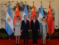 | Beijing Shanghai | 14–18 May | On Sunday 14 Macri and Juliana Awada met with Xi Jinping in the Great Hall of the People. Then they participated in the Belt and Road Forum. On Monday 15 Macri went to Yanqi Lake International Convention & Exhibition Center and worked with the leaders participating in the Forum. On Tuesday 16 Macri met with businessmen from energy, transport and infrastructure areas. Then went to the Chinese Academy of Sciences to celebrate the 45th Anniversary of the Establishment of Diplomatic Relations between Argentina and China. On Wednesday 17 Macri and Juliana Awada deposited a wreath in the Monument to the People's Heroes, in the Tiananmen Square. Then Macri met in the Great Hall of the People with the Premier of the People's Republic of China, Li Keqiang, and then with the Chairman of the Standing Committee of the National People's Congress, Zhang Dejiang. On Thursday 18 Macri went to Shanghai to the official inauguration of the Pavilion of the Argentine Republic in the SIAL-China Exhibition at the New International Expo Center.[14] | |