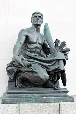 |  Allegories of Art and Industry | Over the north-west door of Birmingham Museum & Art Gallery (The Feeney Gallery extension), Great Charles Street  52°28′52″N 1°54′18″W / 52.4811°N 1.9050°W  |  c. 1919 | William Bloye | Sculpture | Stone | Grade II* | Birmingham City Council | [1][33]