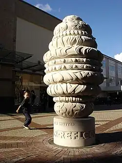 | 'A Point for Reflection' - Associations with water for the Riverside Shopping Centre, a droplet of clouds, rain, swirling rivulets and weaving water weeds. | Marlowes at entrance to Riverside shopping development. | 2008 | Tim Shutter | Hand carved Perryfield Whitbed Portland Stone. | [4] | 51°44′52″N 0°28′22″W / 51.747798°N 0.472687°W |