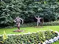 | The Athletes | Ashby Road, Loughborough 52°46′03″N 1°14′07″W / 52.767582°N 1.235394°W | 1997 | Julie Doherty | Sculpture | Steel | Middle figure h. 202 cm; w. 70 cm; d. 100 cm | Charnwood Borough Council | [5]