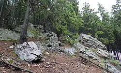 - Präzeptorklippe, in the Rappbode Reservoir, not far from Hasselfelde, Saxony-Anhalt