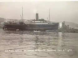 12 January List of shipwrecks: 12 January 1930 Ship State Description Daiten Maru Japan The cargo ship ran aground on Rushiri Island, off Hokkaidō .[ 14] Salvage efforts were abandoned on 17 January and she was declared a total loss.[ 15] Katie United Kingdom The schooner broke free from her moorings in Torbay and drifted into the English Channel . Four crew were rescued by the Padstow Lifeboat.[ 14] Reine des Cieux France The ketch broke free from her moorings in Torbay. Three crew were rescued by the Padstow Lifeboat.[ 14] She came ashore at Bridport , Dorset and broke up.[ 16] HMS St Genny Royal Navy The tug foundered in the English Channel 32 nautical miles (59 km) north west of Ouessant , Finistère , France with the loss of 28 of her 33 crew.[ 17] Survivors were rescued by HMS St. Cyrus ( Royal Navy ).[ 18] The Forester United Kingdom The coaster broke free from her moorings in Portland Harbour , Dorset . She was driven against a breakwater and sank. All eight people on board survived.[ 14] [ 19]