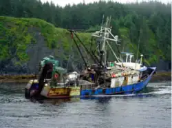 Blue Fin United States The 42-foot (12.8 m) longline fishing vessel capsized near Ketchikan, Alaska, 2 nautical miles (3.7 km) south of Bold Island (55°15′N 131°25′W / 55.250°N 131.417°W / 55.250; -131.417 (Bold Island)) in Southeast Alaska. The vessel Hall Point ( United States) rescued her crew of two from her overturned hull. Blue Fin disappeared after the rescue of her crew and was presumed to have sunk in 600 feet (180 m) of water.[33]