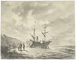 2 January List of shipwrecks: 2 January 1855 Ship State Description Blackheath United Kingdom The ship was last sighted in the Atlantic Ocean whilst on a voyage from Calcutta , India to London . No further trace, presumed foundered with the loss of all hands.[ 17] HNLMS Cycloop Royal Netherlands Navy The paddle steamer was driven ashore near Zandvoort , North Holland with the loss of four of her crew.[ 18] She was on a voyage from the Baltic Sea to Vlissingen , Zeeland .[ 19] Express United Kingdom The ship was driven onto the Pwlchwan Flats, off the coast of Pembrokeshire . She was on a voyage from Miramichi, New Brunswick , British North America to Liverpool , Lancashire . She was refloated the next day.[ 18] Maxim United Kingdom The barque was driven ashore in the Elbe . She was refloated on 23 March and towed in to Glückstadt , Duchy of Holstein .[ 20] Pearl United Kingdom The brig was driven ashore on Foulney Island , Lancashire. She was on a voyage from Liverpool, Lancashire to Valparaíso , Chile.[ 18] Ville de Cette France The steamship was driven ashore and wrecked near Philippeville , Algeria .[ 21] She was on a voyage from Marseille , Bouches-du-Rhône to Philippeville.[ 22] Wilhelmine Prussia The ship ran aground on Taxfleet Ness, in the Humber . She was on a voyage from Königsberg to Hull , Yorkshire , United Kingdom . She was refloated the next day and taken in to Goole , Yorkshire in a leaky condition.[ 23] [ 12] William Jacobus United Kingdom The ship was driven ashore at Flamborough Head , Yorkshire . She was on a voyage from "Frene", France to Leith , Lothian , United Kingdom. She was refloated and put in to Bridlington , Yorkshire.[ 16]