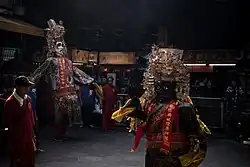 Animal-headed psychopomps[32] - one with the head of an ox, and the other the face of a horse, tasked with escorting the souls of the dead to the underworld, retrieving escaped souls, or enforcing various laws of the underworld. In traditional belief, they are high ranking officials of hell, rather than being merely servants.[33] In Taoist belief and folk superstition, they are described as the first beings one encounters at death, or upon arriving at the gates of the underworld. Also represented as torturers and jailors of hell. Their role is the execute gruesome punishments on sinners.