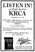 - ^ KRCA advertisement, Riverside (California) Daily Press, September 17, 1926, page 2.