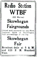 - ^ "Skowhegan Fair to Broadcast Doings", (Lewiston, Maine) Sun-Journal, August 13, 1928, page 5.