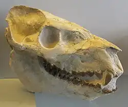 Mounted fossilized skeleton of the Miocene horse Acritohippus - Acteon
