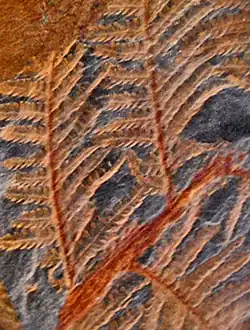 Fossilized fronds of the Carboniferous seed fern Callipteridium - †Callixylon