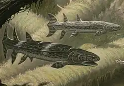 Life restoration of the Late Devonian lobe-finned fish Hyneria - †Hyneria lindae – type locality for species