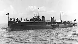 Tripoli served with the Italian fleet until 1910, during which time she participated in extensive fleet training exercises that helped to develop Italian naval doctrine and tactics.[6][7] She was modernized in 1897–1898, receiving new boilers and a modified bow, among other changes.[8] In 1910, she was converted into a minelayer.[2] She served in this capacity during the Italo-Turkish War of 1911–1912 but she saw no action during the conflict.[9] She remained in service through World War I, during which the Italian fleet made extensive use of minefields to keep the Austro-Hungarian Navy contained in the narrow waters of the Adriatic Sea. Tripoli remained in the fleet's inventory until 1923, when she was discarded and broken up for scrap. By that time, she was the last Italian torpedo cruiser, having served for more than thirty-six years.[2][10]