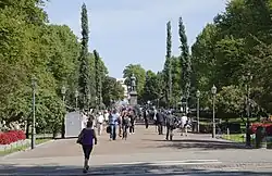 | Esplanadi | 1818 | Esplanadi, colloquially known as Espa, is an esplanade and urban park situated between the Erottaja square and the Market Square. It is bordered on its northern and southern sides by the Pohjoisesplanadi (North Esplanadi) and Eteläesplanadi (South Esplanadi) streets, respectively. Aleksanterinkatu runs parallel to Esplanadi. The eastern end of the park houses the historic Kappeli restaurant, which opened in 1867. In front of the restaurant is an outdoor stage, which hosts live music performances. Centered in the park is a statue of Johan Ludwig Runeberg, created by his son Walter Runeberg. Other public art pieces include works by Viktor Jansson and Gunnar Finne. | |