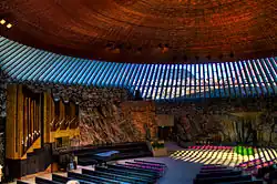 ![]() | Temppeliaukio Church (Temppeliaukion kirkko) | 1969 | Built directly into granite bedrock, Temppeliaukio Church is a unique tourist attraction and the second most visited church in Helsinki. Also known as the Rock Church, it is located inside a hill in Töölö. |