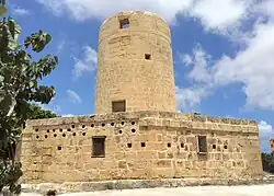 | Mellieħa | Windmill near Salib tal-Pellegrini 35°57′23.6″N 14°21′54.1″E / 35.956556°N 14.365028°E | Tower | Late 17th century Rebuilt 1849 | Sails removed in 1938. Now used as a restaurant known as Il-Mitħna Restaurant.[31] | |