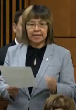 | Ethel Blondin-Andrew (born 1951) | Western Arctic | November 21, 1988 | January 22, 2006 | Liberal | [63] | First Indigenous woman elected to Parliament Minister of Children and Youth Development (1993–2004) Minister for Northern Development (2004–2006) | ||