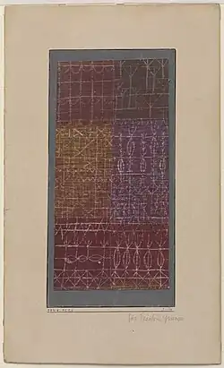 ![]() | 1917 Ab ovo | Zentrum Paul Klee, Bern | Watercolour on gauze and paper | |