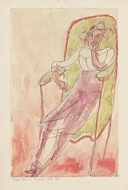 ![]() | 1913 Young Woman in the Armchair | 27 x 17.5 | Sprengel Museum, Hanover | Watercolour and oil on paper, on cardboard |