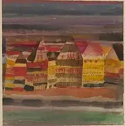 ![]() | 1915 Landscape with Flags, Houses with Flags | 23.3 x 28.3 | Sprengel Museum, Hanover | Watercolour and oil on paper, on cardboard |