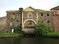 | Warehouse adjacent to coal wharf 53°23′51″N 2°21′15″W / 53.39756°N 2.35418°W | ![]() | 1833 | The warehouse, with an opening containing a branch of the Bridgewater Canal, is in brick on a stone plinth, with stone dressings, an eaves cornice, a parapet, and roofs of slate and asbestos. It has a square plan with three storeys and five bays. The central bay projects, and has a pediment with a circular opening and a moulded surround, rusticated quoins and voussoirs, and a keystone, above which is a Venetian window with a dated keystone. Elsewhere there are semicircular-headed openings and loading bays with hoist canopies.[21][22] | II |