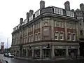 | Stamford House 53°23′13″N 2°20′55″W / 53.38695°N 2.34861°W | ![]() | 1904–05 | A row of shops with offices above by Charles Henry Heathcote in Edwardian Baroque style on a corner site. It is in red brick with glazed buff terracotta dressings and a mansard roof in green slate. There are three storeys, basements and attics, an L-shaped plan, three bays on each front and a curved bay on the corner. On the ground floor are modern shop fronts, pilasters, a frieze and a cornice, and on the upper floors are giant Ionic pilasters, capitals with foliated pendants, a frieze, and a prominent cornice. The windows are sashes with triple keystones. In the centre of the Stamford New Road front is an open segmental pediment containing a cartouche. On the Moss Lane front is a wagon entry above which are segmental oriel windows and a domed turret, and this is repeated, without the entry, to the south.[21][56] | II |