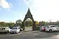 | Lodges and gateway, Barnsley Cemetery 53°32′49″N 1°28′06″W / 53.54686°N 1.46829°W | 1860–61 | At the entrance to the cemetery is a pointed archway with buttresses, kneelers, and iron finials. It is linked to the two lodges by low coped stone walls with iron railings. The lodges are in stone with Welsh slate roofs. The left lodge is a mortuary chapel and has a single storey, an octagonal plan, and a pyramidal roof, and it contains spherical triangle windows. The right lodge has two storeys, and four bays, the left part octagonal with a pyramidal roof. It contains a porch with an arched doorway, there is one gabled dormer, and most of the other windows are lancets.[12][34] | II | |