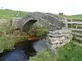 | Hebble Hole Footbridge 53°45′00″N 2°02′59″W / 53.75007°N 2.04986°W | ![]() | Late 17th or early 18th century (probable) | A clapper bridge that carries the Pennine Way over Colden Water. It consists of four monoliths in pairs, on a triangular cutwater. At the south end are two upright stones, and the bridge has a cast iron handrail.[15] | II |