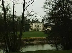 | Chillington Hall 52°39′31″N 2°12′10″W / 52.65851°N 2.20284°W | ![]() | 1724 | The south front of the country house is the older part, probably by Francis Smith, and the east front was added in 1786–89 by Sir John Soane. The house is built in brick with stone dressings and has tile roofs. The south front has a moulded plinth, rusticated corner pilasters, a moulded cornice, and a balustraded parapet. There are three storeys and eight bays. The windows are sashes with moulded surrounds, raised keystones, and aprons. The east front also has a plinth, a moulded cornice, and a balustraded parapet. There are two storeys and an attic, three-storey outer wings, and nine bays between the wings. In front of the middle three bays, and approached by steps, is an unfluted ionic portico, with a pediment containing a coat of arms. The windows are sashes in architraves, and to the rear is a stable court with a west front of 15 bays containing casement windows.[41][42] | I |