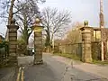 | Gate piers and gates, Burley Hall 53°54′46″N 1°44′28″W / 53.91270°N 1.74123°W | — | Early to mid 19th century (probable) | The gate piers at the entrance to the drive are in stone, with a square section and pyramidal caps. The gates are mainly in wood and are surmounted by a decorative metal frieze with spear finials.[46] | II |