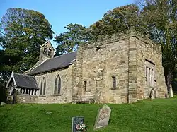 | St Peter's Church 54°07′58″N 1°01′35″W / 54.13284°N 1.02628°W | ![]() | Early 12th century | The church has been altered and extended through the centuries, including alterations in 1886. It is built in sandstone with roofs of Welsh slate and lead, and consists of a three-bay nave with a two-light bellcote on the west gable, a south porch, and a two-bay chancel. The south doorway is Norman with one order and imposts. The chancel has the appearance of a tower house, with stepped buttresses and an embattled parapet. The east window has three lights, the jambs with carved depictions.[2][3] | I |