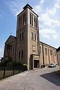 | St John and St Mary Magdalene Church, Goldthorpe 53°32′08″N 1°18′08″W / 53.53568°N 1.30221°W | ![]() | 1914–16 | The church, which was designed by A. Y. Nutt, is built in reinforced concrete with exposed aggregate, and has a pantile roof. It consists of a nave, north and south aisles, a chancel with an apse, a south chapel, and a south west tower. The tower has three stages and a hipped roof, surmounted by a clock with decorative framework and a domed cupola. At the west end of the church is a porch, above which is a sculpture of Christ on the cross, under a moulded segmental canopy.[10][11] |