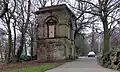 | The Temple, Crow Nest Park 53°41′14″N 1°38′53″W / 53.68728°N 1.64799°W | ![]() | Mid to late 18th century | A summer house in stone, consisting of a square building with a basement and one bay, with a continuous sill band, an eaves cornice, and a blocking course. On each face is a round-arched recess, one containing a doorway, and the others blocked windows, each with a chambranle, a pulvinated frieze, and a triangular pediment on small corbels. Stone steps lead to a doorway in the basement.[2][36] | II |