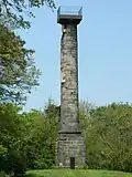 | Jessop Monument 53°03′18″N 1°21′23″W / 53.05503°N 1.35630°W | ![]() | 1854–58 | The memorial is to the memory of William Jessop, it is in stone, and forms a tower about 30 feet (9.1 m) high. This consists of a Tuscan column on a deep plinth, and at the top is a cast iron capital on which is a viewing platform with iron railings. On the sides of the column are small slit windows, and at the base are two blocked doorways.[5][13] |