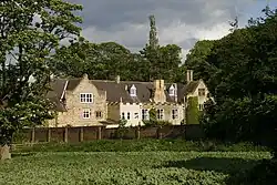 | The Hall 54°13′36″N 1°31′04″W / 54.22662°N 1.51781°W | ![]() | c. 1572 | A large house in stone and brick, partly rendered, with a Welsh slate roof. It is partly in two storeys with attics, and partly in three storeys. The east front has six bays, the west front has a central embattled range and flanking gabled cross-wings, and there is a two-storey wing to the north. Features include coped pedimented gables and finials, quoins, and doorways with four-centred arched heads. The windows are a mix, and include sashes, some horizontally-sliding, and mullioned windows, some also with transoms.[4][5] | II* |