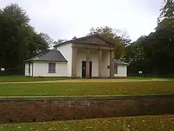 | Rose Cottage 53°32′05″N 2°15′47″W / 53.53482°N 2.26310°W | ![]() | Late 18th century | Originally the head gardener's cottage, it is in red brick with a slate roof. There are two storeys, and the building is in two parts, with the dwelling to the west and a store to the east. The dwelling faces south and has three bays, a round-headed doorway with quarter columns and a fanlight, and sash windows with wedge lintels. The other part faces north and has an arched doorway and casement windows.[7] | II |