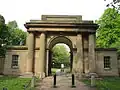 | Grand Lodge and walls 53°31′31″N 2°15′46″W / 53.52529°N 2.26272°W | ![]() | 1807 | A gateway at the southwest entrance to Heaton Park, it is in sandstone, and was designed by Lewis Wyatt. The structure consists of a round-headed archway flanked by paired Doric three-quarter columns, with impost bands, and a scrolled keystone. The entablature includes a moulded cornice, and a parapet with a panelled upstand. At the sides are single-storey flat-roofed lodges with lunettes in the returns, and the gateway is flanked on both sides by curved walls.[10][11] | II* |