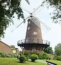 | Green's Mill 52°57′08″N 1°07′46″W / 52.95215°N 1.12942°W | 1807 | The windmill was damaged by fire in 1947, and has since been restored as part of a museum. It is a tapering round tower with five stages, and has an ogee wooden cap with a finial, a fantail and four sails. The windmill contains doors in the lower two stages, a circular wooden gallery in the first stage, and casement windows in each stage.[8][9] | II | |