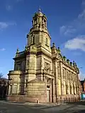 | St James' Church 53°32′45″N 2°05′44″W / 53.54578°N 2.09545°W | ![]() | 1827–28 | A Commissioners' church by Francis Goodwin, with the chancel added in 1883. It is in stone, with a Welsh slate roof, and consists of a nave, north and south aisles, a shallow canted apse at the east end, a west tower, and vestries flanking the tower. The tower has clasping buttresses, a parapet above the second stage, and flying buttresses to the octagonal belfry stage that contains clock faces. At the top is an embattled parapet with corner pinnacles.[40][41] | II |