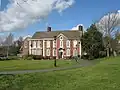 | Rochdale Museum, The Old Vicarage 53°36′52″N 2°09′31″W / 53.61455°N 2.15853°W | ![]() | c. 1724 | The vicarage, later used as a museum, was altered in about 1820. It is in brick with a stone basement, stone dressings quoins, a wooden modillion eaves cornice, and has roofs of stone-slate and 20th-century tiles. The main block has two storeys with attics and two basement storeys, a front of five bays, a two-bay extension to the left and a gabled single-storey extension to the right. The doorway has a fanlight and a segmental hood with a carved shell and a cherub on console brackets. The windows are ashes with keystones, and there is a square bay window in the left extension. At the rear are re-used mullioned windows and a stair bay.[33][34] | II |