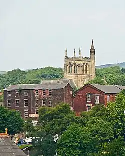 | Ukrainian Catholic Church of Saint Mary 53°37′13″N 2°09′12″W / 53.62040°N 2.15341°W | 1821 | Originally the Anglican Church of St James, later a Roman Catholic church, it is stone with a slate roof. The church consists of a nave, a small chancel with a north vestry, and a west tower flanked by porches. The tower has three stages, buttresses rising to crocketed pinnacles, clock faces, and an embattled parapet. Along the sides of the nave are buttresses, an embattled parapet, and windows in Perpendicular style.[85][86] | II | |