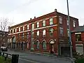 | Waterside House 53°36′58″N 2°09′13″W / 53.61609°N 2.15358°W | ![]() | 1820s | Formerly the engine house and warehouse of a woollen mill, the engine house is the earliest part and the rest was added later in the century. The building is in orange brick and sandstone with sandstone dressings, and four parallel hipped slate roofs. There are three storeys and the front and four at the rear, and ten bays. The engine house is in the first bay, which has a rusticated ground floor containing an entrance with a round-headed window above. In the second bay is a round-headed cart entrance with voussoirs, and the seventh bay is occupied by taking-in doors. The doorways and windows on the ground and middle floors have round heads and the windows on the top floor have flat heads.[97] | II |